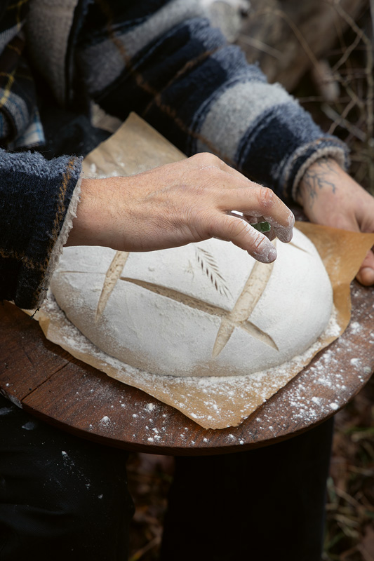 Als ich einige Zeit nach dem Kurs mit Karin Mossberg Sonnek spreche, sind sie und ihr Mann schon voll bei der Sache. »Wir haben das Feuer hauptsächlich mit gespanntem Holz gefüttert, um die Hitze schnell zu regulieren. Es gab auch eine Zeit, in der wir beschlossen, beim Feuermachen keine Streichhölzer zu verwenden, sondern die Flammen nur mit einem Feuerstahl und einem gebrannten Federstock zu entfachen. David hat das ziemlich lange durchgehalten«, erzählt Karin. Sie hat auch versucht, Öl zu räuchern, so wie wir es mit der Sahne im Wald gemacht haben, und die beiden haben draußen gebacken. »Die nachhaltigste Erinnerung ist wohl, dass man so viele verschiedene Speisen mit unterschiedlichen Techniken zubereiten kann: Brennnesselsuppe kochen, Biskuit backen, die Rohwaren direkt ins Feuer legen, Kabeljau dämpfen, Sahne räuchern, Kartoffeln braten.«