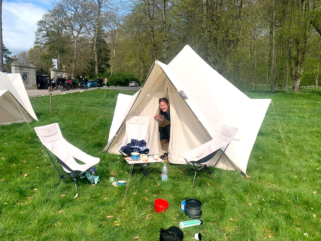 Der Duft von Lagerfeuer, Kaffee, frisch gehacktem Holz und Waffeln liegt in der Luft, als unser kleiner Tross – Victoria, Philipp und ich – am Fuße des Barockschlosses Ledreborg Slot in der Region Lejre eintrifft. Das Anwesen mit seinen historischen Gärten, rund 40 Kilometer westlich von Kopenhagen, liegt inmitten einer sanften Hügellandschaft, direkt am Nationalpark Skjoldungernes Land, einem der jüngsten Naturschutzgebiete Dänemarks. Für die kommenden drei Tage verwandelt sich das stille Schlossgelände in ein Camp für Outdoor-Fans: das Danish Outdoor Festival.