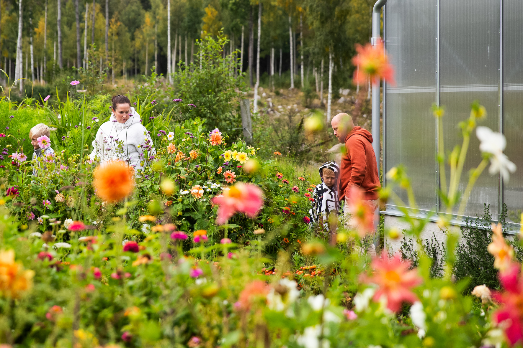 Unter den Besuchern von Erkers Lantgård treffen wir die Familie Günther aus Vikarbyn, die Tomaten, Blumen und Süßigkeiten gekauft hat. „Es ist so schön hier! Wir sind 2021 aus Deutschland hierher gezogen und fühlen uns immer noch ein bisschen wie Touristen auf Entdeckungsreise. Wir wollten irgendwohin ziehen, wo wir an einem See leben können und einen richtigen Winter und ein bisschen Kultur haben. Wir haben uns mit einer Karte hingesetzt und sind so in Vikarbyn gelandet.