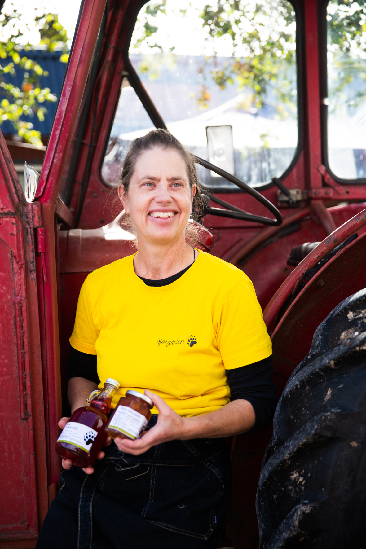Hinter der Produktion steht Yvonne Björ, die sich vor 20 Jahren entschied, ihren Job als Unternehmensberaterin aufzugeben, um ihren Traum zu verwirklichen: mit handwerklich hergestellten Lebensmitteln zu arbeiten. Sie besuchte einen Kurs bei Eldrimner in Jämtland, Schwedens Zentrum für handwerklich hergestellte Lebensmittel, baute eine Marmeladenwerkstatt auf dem Hof und begann, Marmelade in französischen Kupfertöpfen zu kochen. Seitdem hat sie Preise sowohl bei schwedischen als auch bei nordischen Meisterschaften im Lebensmittelhandwerk gewonnen. Heute gibt sie selbst Kurse in traditioneller Marmeladenherstellung auf ihrem Hof. Yvonne ist auch Vorsitzende der gemeinnützigen Organisation Mat runt Siljan, die hinter der jährlichen Food-Tour steht. „Dies ist eines der besten Wochenenden des Jahres und eine fantastische Gelegenheit für uns, lokal produzierte Lebensmittel zu präsentieren“, sagt sie. „Wir möchten alle in Dalarna hergestellten Lebensmittel hervorheben und heißen daher alle willkommen, unabhängig davon, ob es sich um große oder kleine Produktionsbetriebe handelt.