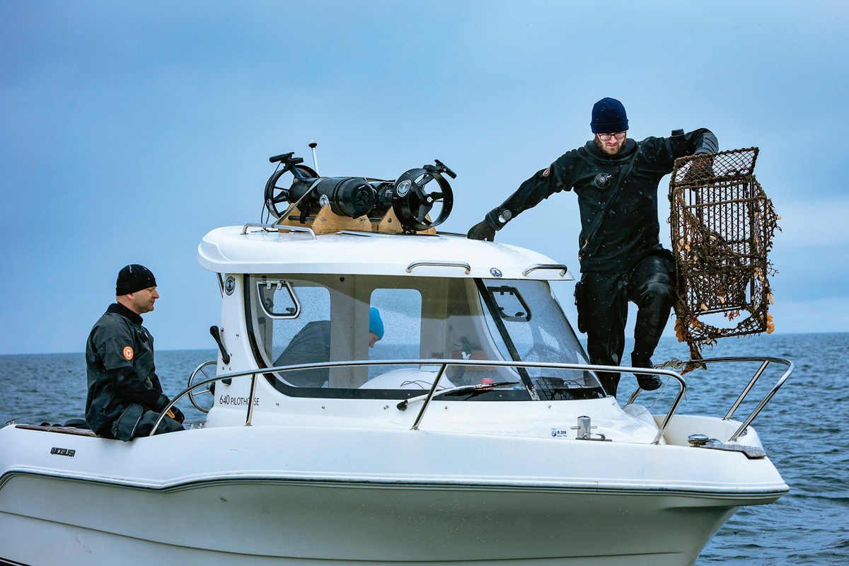 »Manche, die uns helfen wollen, haben nur Erfahrung mit ›Cocktail-Tauchen‹ in Thailand. Sie kriegen einen Kälteschock, wenn sie hier ankommen und das Wasser nur ein paar Grad hat«, sagt Jocke. »Auch die Sicht ist eine Herausforderung«, ergänzt Palle. »Wenn wir Geisternetze oder Hummerfallen losreißen, werden Sedimente aufgewirbelt wie eine Wolke. Dann siehst du nichts mehr.«