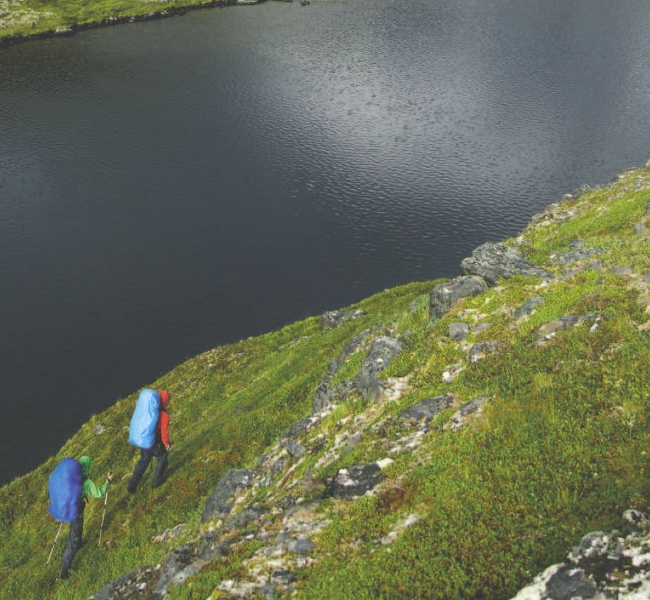 »Ihr seht aus, als wolltet ihr in den Nationalpark«, leitet sie ihr Gespräch ein. »Das ist ja toll. Habt ihr denn eine gute Karte und einen Kompass dabei. Markierte Wege gibt’s da oben nämlich nicht.« Immerhin, sie verrät den beiden, dass hinter dem Schulgebäude ein Trampelpfad zu erkennen sein müsste. »Auf dem kommt ihr zumindest hoch zum Piggfjell. Von dort müsst ihr euch dann euren weiteren Weg selbst suchen. Viel Glück.«