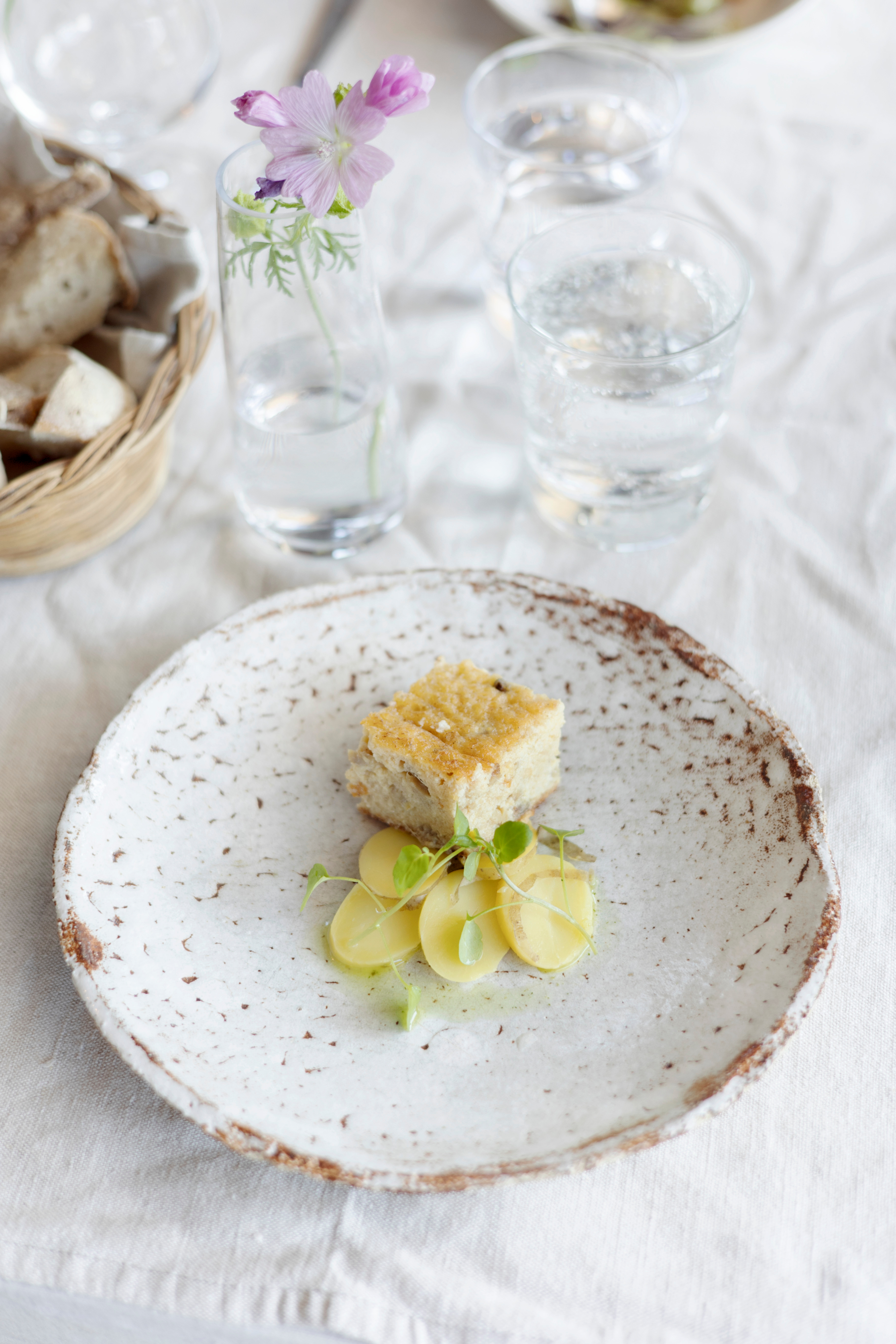 Von der Terrasse des Restaurants Tila, auf dem Gipfel des Hügels, überblickt man eine Wiese, auf der Schafe grasen. Im Innenhof kräht ein Hahn. Die ländliche Idylle ist perfekt, aber natürlich steht das Essen im Mittelpunkt des Lokals. Der Kellner bringt eine Vorspeise, ein Heringssoufflé. Die Fotografin Maija sagt ein wenig verlegen, dass sie keinen Hering mag. »Das haben viele andere hier auch erst behauptet«, sagt Liisa Neuvonen, die sich bereit erklärt hat, für den heutigen Tag unser Guide im Sipoonkorpi-Nationalpark zu sein. Der Hering gibt dem Soufflé genau den richtigen salzigen Biss. Köstlich, findet auch Maija. Der Hauptgang wird mit einem zufriedenen Raunen bedacht ebenso wie das selbst gebackene Hafer-Dinkelbrot.