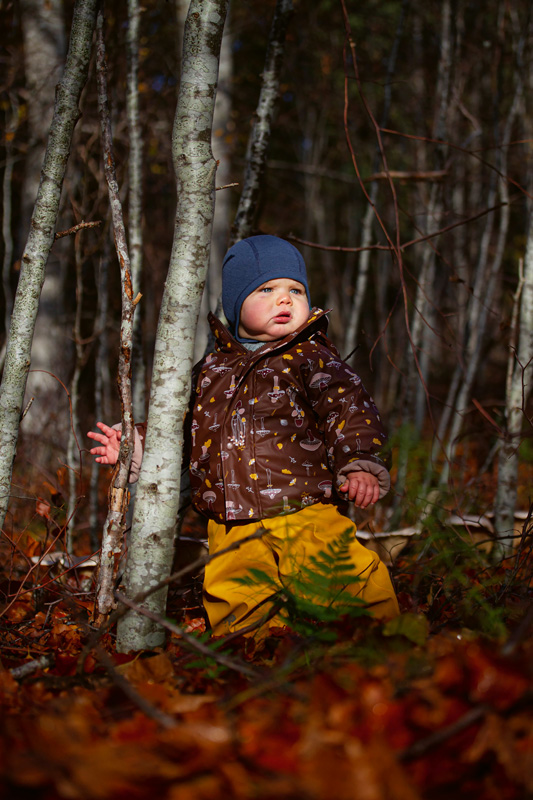 Als wir uns auf den Rückweg machen, diesmal auf dem etwas kürzeren Skogstigen, frischt der Wind auf. Das Schilf am Ufer flüstert und ein Graureiher erhebt sich schwer in den Himmel. Lovisa und Pim werfen Blätter in die Luft, die der Herbst in Rot- und Gelbtöne getaucht hat, und kichern, wenn sie raschelnd zu Boden fallen. Der Weg führt uns durch schattige Laubwälder mit Eschen, Ahorn und Ulmen, dann weiter in lichte Kiefernwälder, wo Blaubeeren den Boden bedecken. Wir singen, erzählen Geschichten und locken die Kinder mit Keksen, damit sie weitergehen. Auf dem letzten Kilometer beginnt es zu regnen. Zuerst ganz leicht, dann immer stärker. Wir suchen Regenjacken und Regenhosen heraus. Sune, mit seiner nun überdimensionalen Lippe, schlummert regenfest in Veras Trage. Die Mädchen aber haben keine Lust, ihre Regenbekleidung anzuziehen, fangen an zu quengeln und sind nach der langen Wanderung ohnehin schon kurz angebunden.