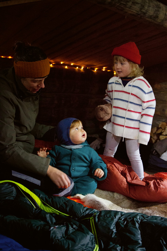 Zum Entsetzen meiner Freundin Ina hat sich ihre Tochter Pim gerade ihrer Wanderhose entledigt und tanzt barfuß im Nieselregen auf der Holzbank vor unserem Lagerfeuer. Dann beschließt die Dreijährige, einen glühenden Holzscheit aus den Flammen zu fischen, um ihn als Schwert zu benutzen. Inspiriert von Pims Taten will auch meine zweijährige Tochter Lovisa nicht im Schlafsack bleiben und kriecht entschlossen immer wieder aus dem Windschutz heraus, in dem wir uns für die Nacht zur Ruhe betten wollten.