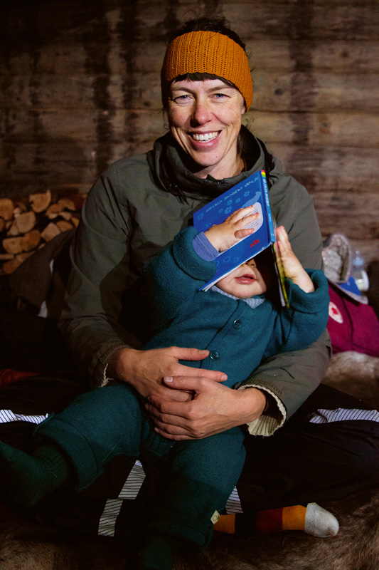 Ina, Vera und ich hatten ein paar vermeintlich unverzichtbare Utensilien eingepackt – ein dritter Satz Wechselkleidung, ein zusätzliches Paket Windeln, dicke Rentierfelle, ein voluminöses Stofftier, von dessen Mitnahme die Laune eines Teammitglieds abhing, und Snacks in Hülle und Fülle für die Kleinen. Wir waren guter Hoffnung, dass Victoria – die Einzige ohne Kinder auf diesem Trip, die sich nach einigen Bestechungsversuchen dazu bereit erklärte, uns zu begleiten und uns beim Tragen und der Bespaßung unseres Nachwuchses zu helfen – sich diesem Extragepäck annehmen könnte. Doch ein Blick in ihr ungläubiges Gesicht mit weit aufgerissenen Augen desillusionierte uns gänzlich von diesem Vorhaben.