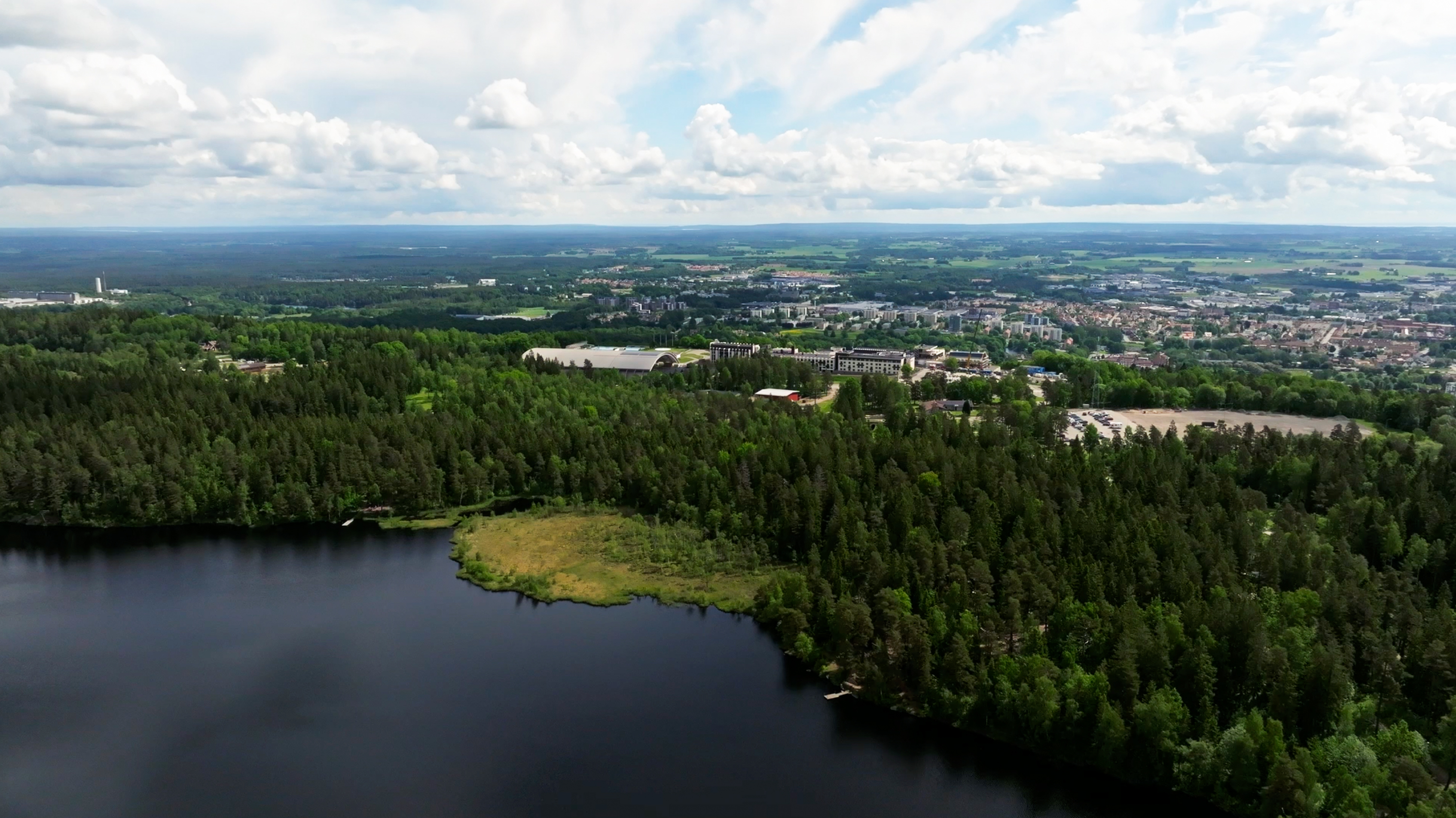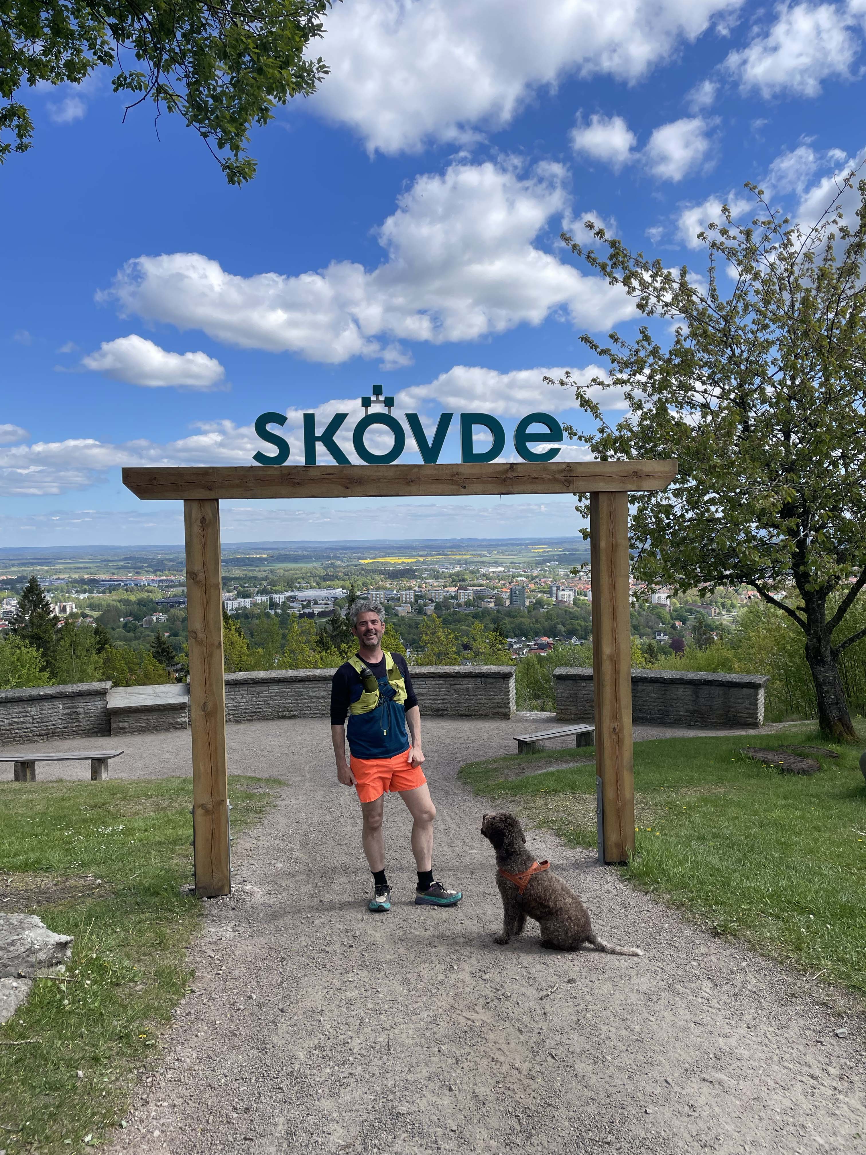 Am Aussichtspunkt Skultorps Nabbe essen wir zu Mittag. Der Blick reicht über die Landschaft, über die Ausläufer der Stadt, Industrie, Wälder und Felder. Hier sieht man, wie der Billingen Skövde umarmt – und wie der steile Rand die ansonsten sanfte Form des Plateaus unterbricht.