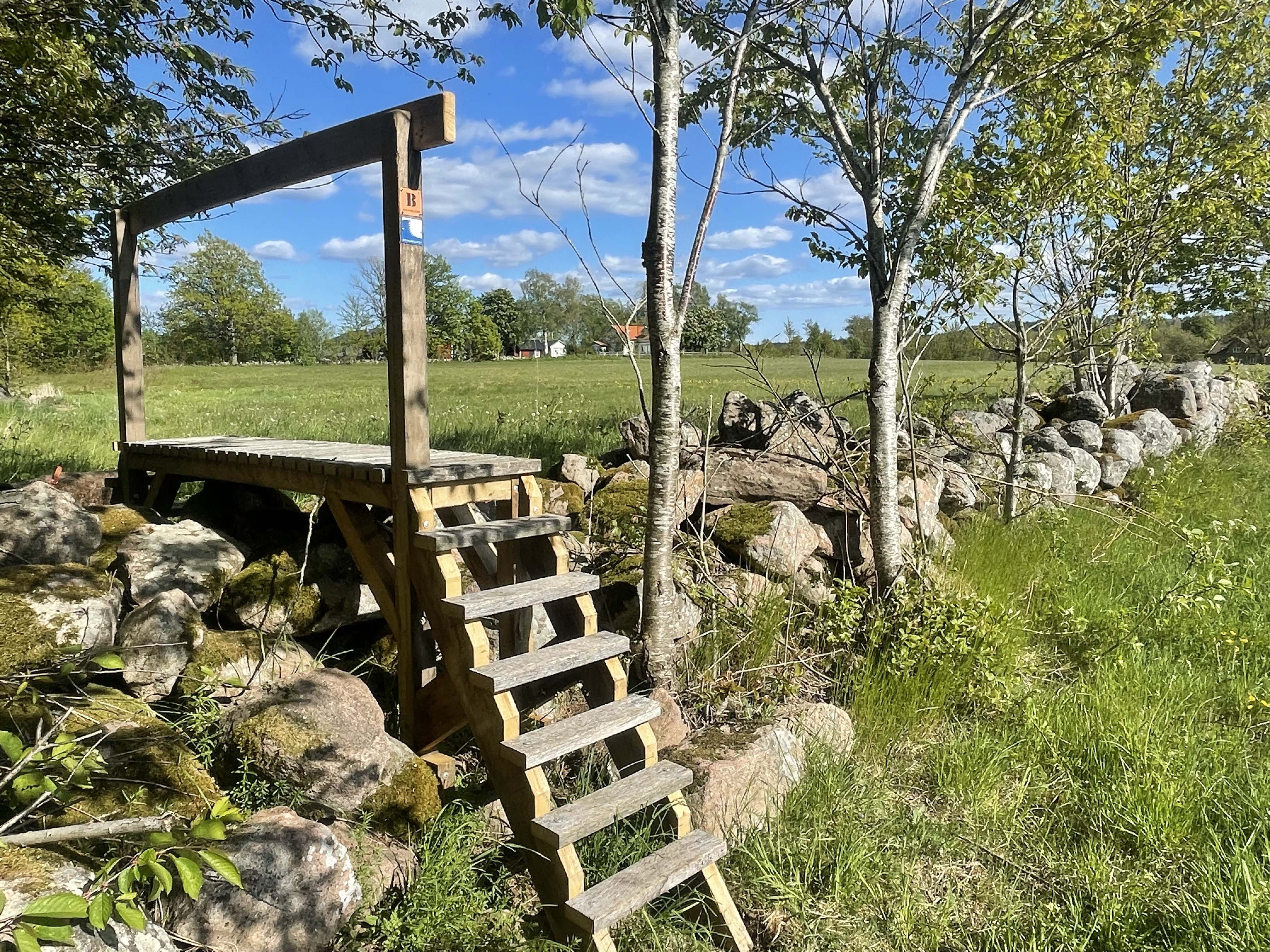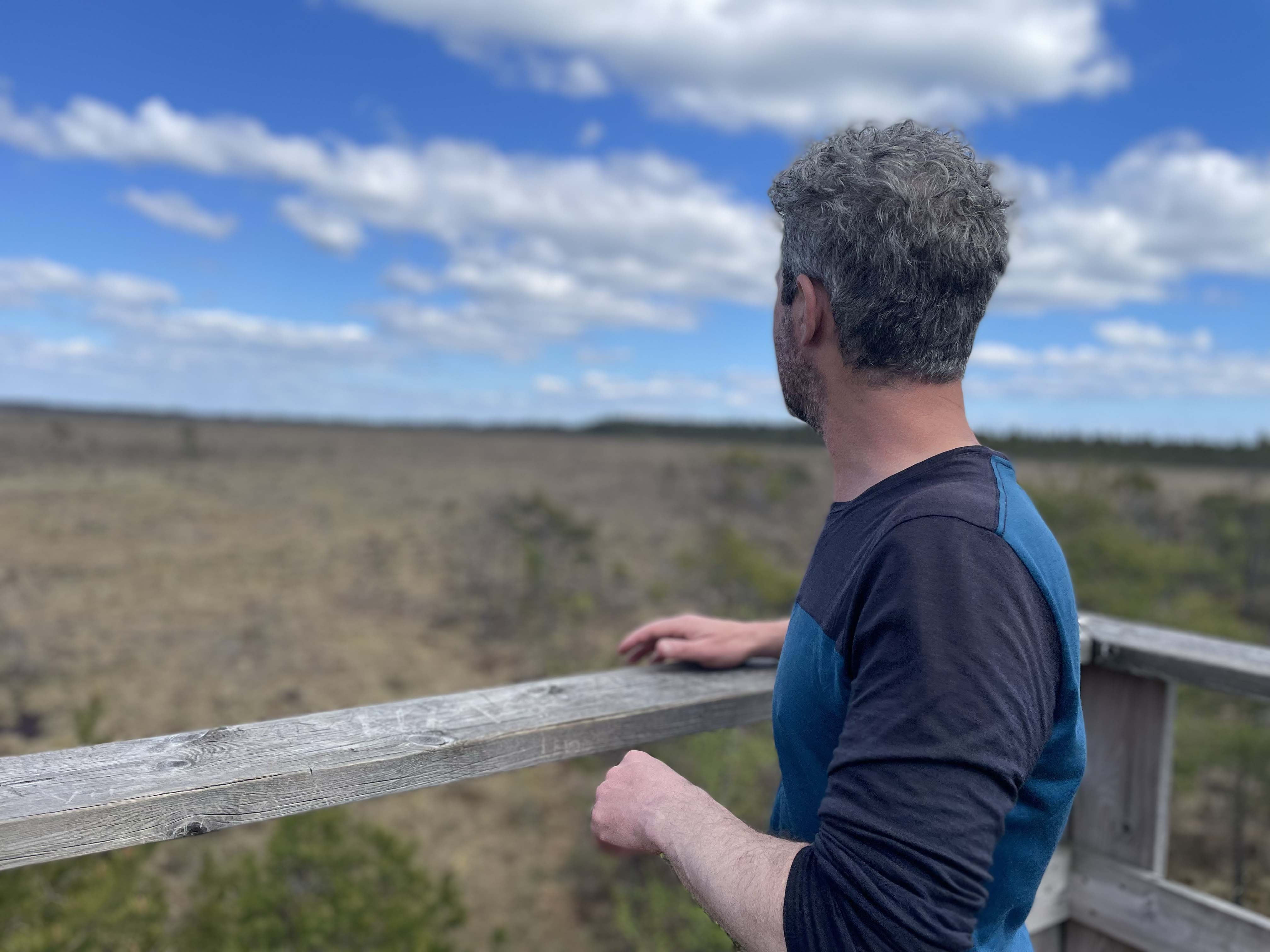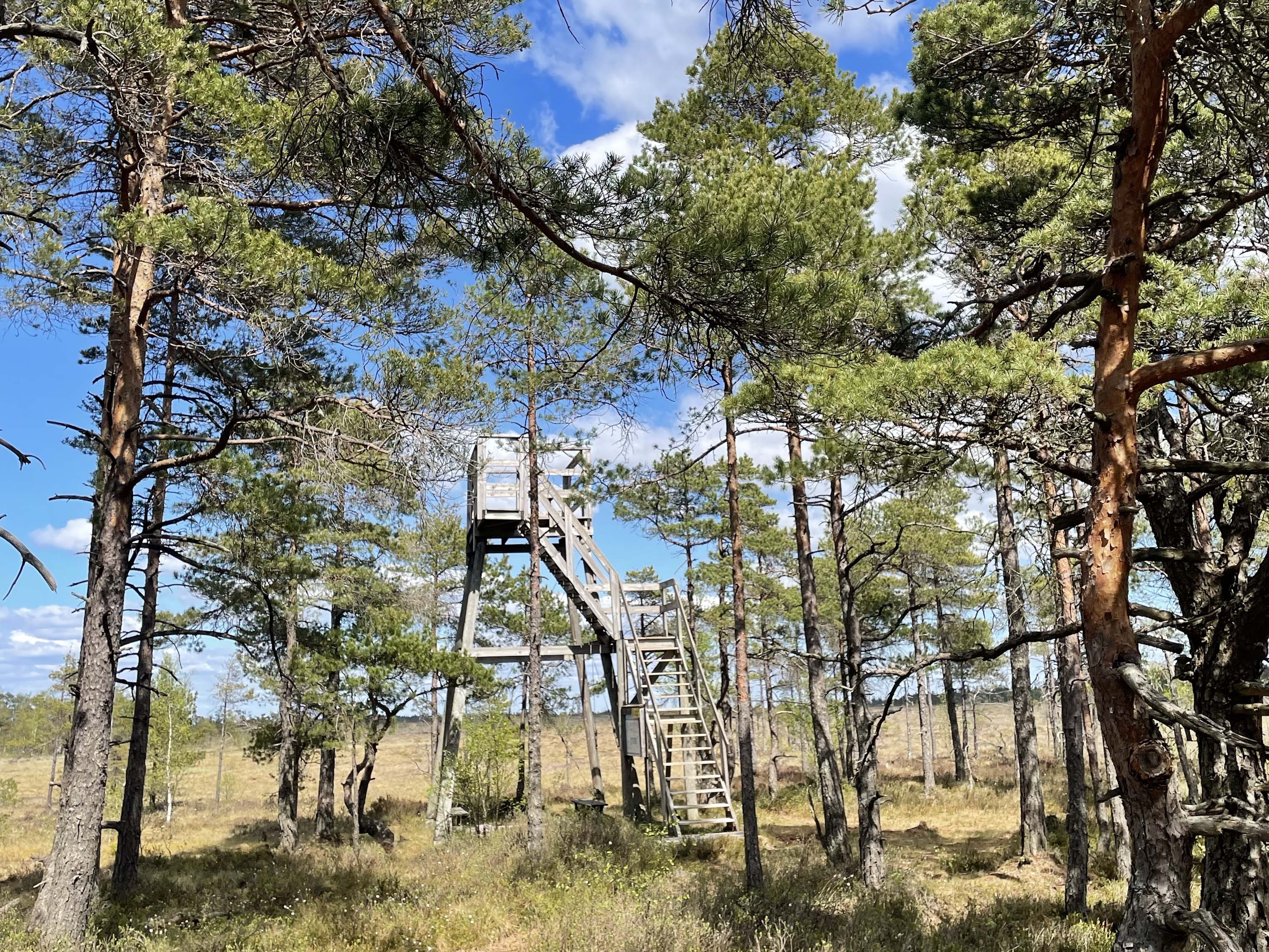 Im Blängsmossen machen wir Halt und klettern auf den wackeligen Vogelturm.