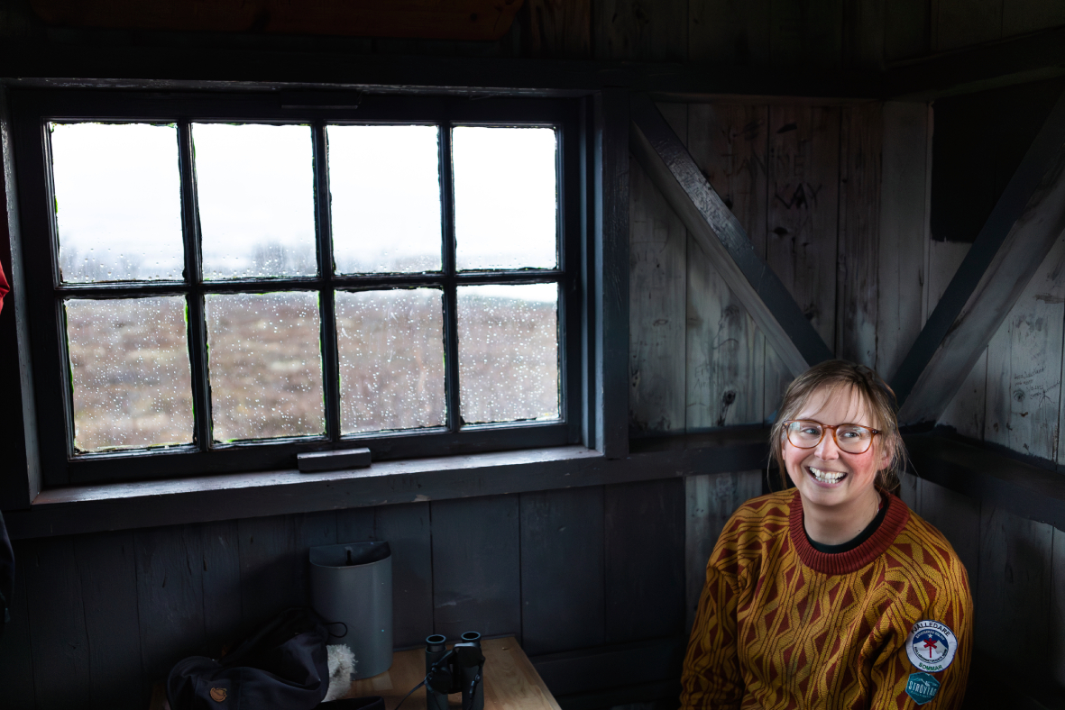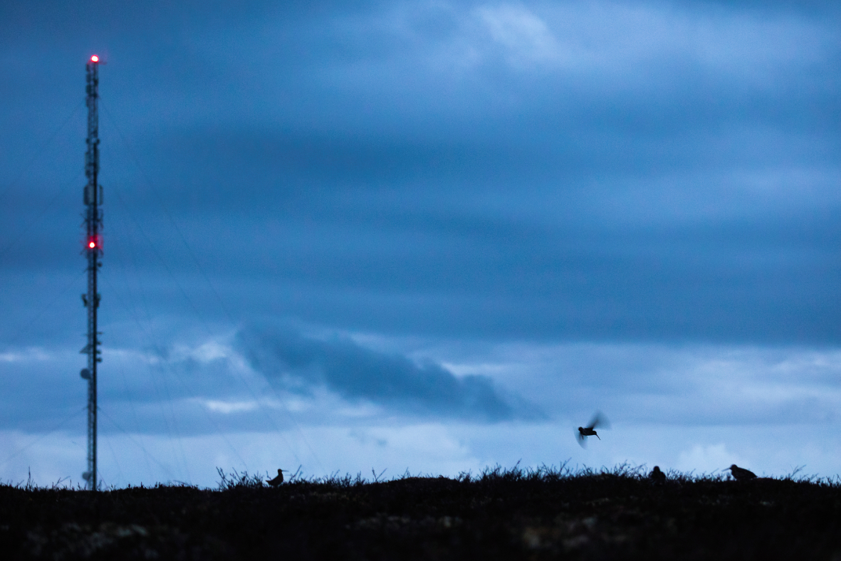 „Es sind normalerweise verschiedene Büschel, die an verschiedenen Abenden beliebt sind“, erzählt Sofie, als wir uns dem Gipfel des Högåsen nähern. Das Wetter ist kühl und bewölkt, aber das ist kein Nachteil, solange man selbst richtig angezogen ist. Was die Aktivität der Doppelschnepfen betrifft, kann es sogar von Vorteil sein, wenn es etwas bewölkt ist – dann sind sie oft aktiver. Und für uns gibt es tatsächlich ein Dach über dem Kopf mitten auf dem Moor, 730 Meter über dem Meeresspiegel, falls das Wetter umschlagen und ungemütlich werden sollte.