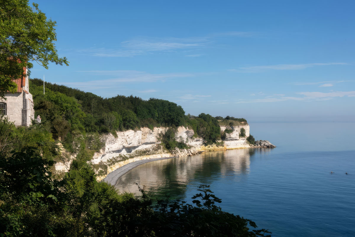 Eine hohe Kalksteinklippe erstreckt sich 20 Kilometer entlang der Küste in Richtung Öresund. Das dramatische Stevns Klint wurde von der UNESCO zum Weltkulturerbe erklärt – ein dünner, grauer Streifen im Gestein zeugt nämlich von dem Meteoriten, der vor 66 Millionen Jahren die Dinosaurier auslöschte. Mehr kann man im Museum Stevns Klint Experience erfahren, in dem es auch einen schönen Laden mit lokalem Kunsthandwerk gibt. Entlang des Trampestien, eines 22 Kilometer langen Wanderwegs an der Klippenkante, passiert man auch die beeindruckende alte Kirche von Højerup aus dem 13. Jahrhundert, deren Chor vor 100 Jahren dramatisch in den Abgrund stürzte.