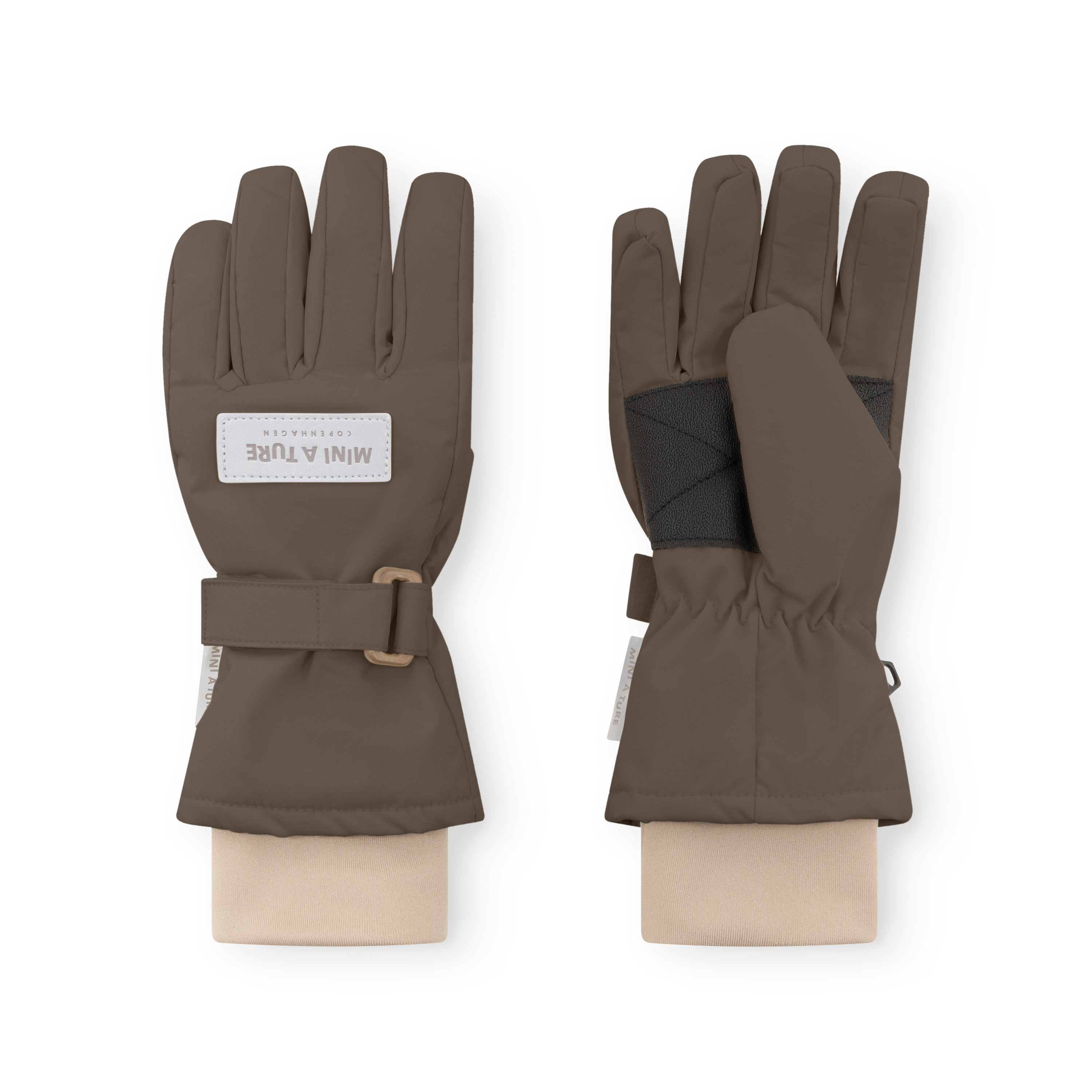 Klassische Handschuhe aus recyceltem Nylon. Wind- und wasserdicht, atmungsaktiv und warm genug für einen sehr kalten Winter. Die Handschuhe haben eine Verstärkung in der Handfläche und einen Gummizug am Handgelenk, was für eine gute Passform sorgt und Schnee und Regen abhält.