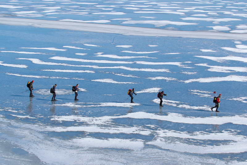Die Insel Huvudskär liegt weit draußen im Stockholmer Schärengarten. Ihre Lage im äußeren Archipel sorgt dafür, dass Wind und Strömungen das Eis früh aufbrechen oder gar nicht erst schließen. Entsprechend selten entstehen zusammenhängende Eisflächen bis zur Insel. Wenn dies doch der Fall ist, führt die Route weit hinaus über offene Schärenbereiche. Ziel ist die Hauptinsel mit ihrem markanten Leuchtturm. Schlittschuhlaufen auf Natureis verbindet sich hier mit einer ungewöhnlich weiten, fast maritimen Kulisse