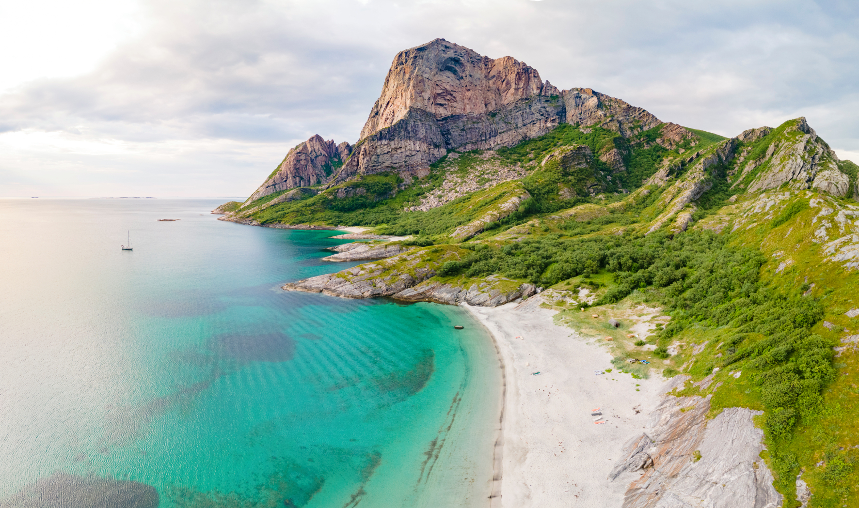 Mit seiner spektakulären Aussicht vom Gipfel – die von den Lofoten im Norden bis nach Vega im Süden reicht – ist Rødøyløva eine der beliebtesten Bergwanderungen entlang der Helgelandsküste. Als erste der fünf nationalen Aussichtswanderungen Norwegens bietet sie einen gut gepflegten Weg mit einer Steintreppe, die von nepalesischen Sherpas über weite Teile der Strecke gebaut wurde. Auch wenn dies die Wanderung für ungeübte Wanderer zugänglich macht, solltest du bedenken, dass eine über 400 Meter lange Treppe keine leichte Herausforderung ist. Wie man in Norwegen sagt: Es ist keine Schande, umzukehren. Das ist ein guter Rat – und wer ihn befolgt, wird am Fuße des Berges von einem schönen Strand belohnt.