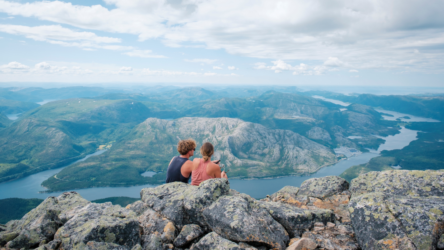 Die Gipfel der Sieben Schwestern liegen in einer Reihe. Wanderer werden von den spektakulären Ausblicken von den Gipfeln über die beiden Fjorde Vefsnfjorden und Alstenfjorden angezogen, die entlang der Bergkette verlaufen. Die sieben Schwestern bieten auch die einzigartige Möglichkeit, selbst zu entscheiden, wie viele Gipfel man an einem Tag besteigen möchte. Die anspruchsvollsten Gipfel sind Skjerdingen und Tvillingan. Sie sind beide etwa acht Kilometer lang (hin und zurück) und ihre Besteigung dauert etwa fünf Stunden. Erfahrene Gipfelstürmer können alle sieben Gipfel über einen 26 Kilometer langen markierten Weg besteigen. Dieser Pfad lässt sich am besten von Süden nach Norden zurücklegen, um mit den anspruchsvollsten Gipfeln zu beginnen, und dauert zwischen 15 und 20 Stunden.