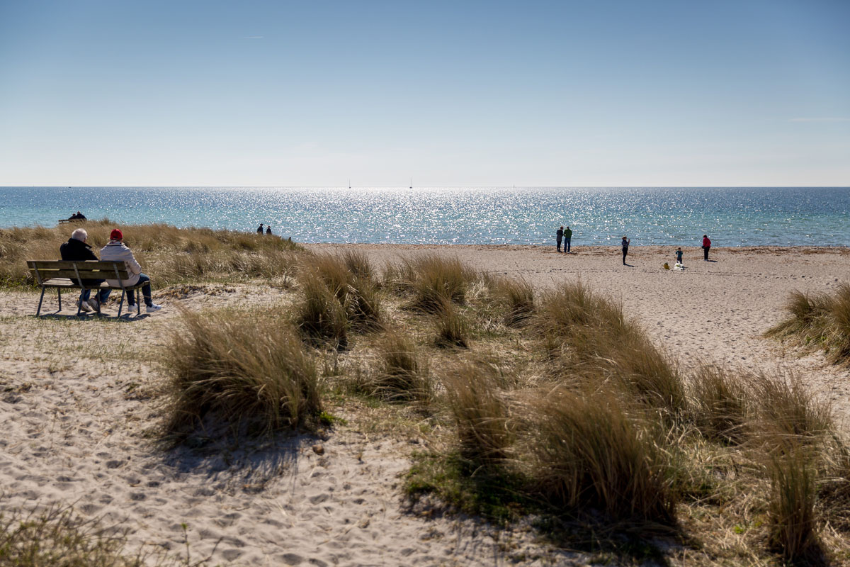 Südlich von Solrød, wo die Bebauung langsam ausdünnt und die Küstenlandschaft sich wieder öffnet, liegt Jersie Strand. Der feine Sand, das hohe Dünengras und der weite Blick über den Sund machen ihn zu einem wundervollen Ruhespot. Häufig ist man hier fast allein – selbst am Wochenende. Wer mit SUP oder Kajak unterwegs ist, findet ideale Bedingungen. Mit der Bahn fährt man etwa 50 Minuten und landet an einem Stück ursprünglicher dänischer Ostseeküste.
