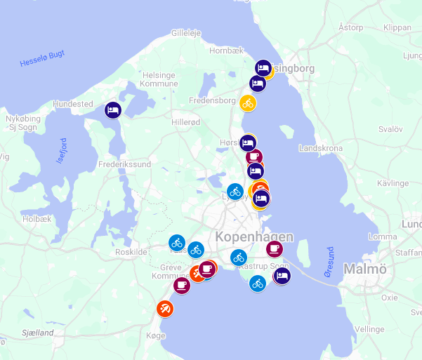 Ein Restaurant mit bester Aussicht auf den Øresund ist das Café Baaden, das sich über drei Etagen erstreckt. Ganz oben lockt eine Dachterrasse für warme Tage. Auf der Karte stehen Klassiker wie die beliebten Fish & Chips sowie eine große Auswahl an lokalen Bieren.