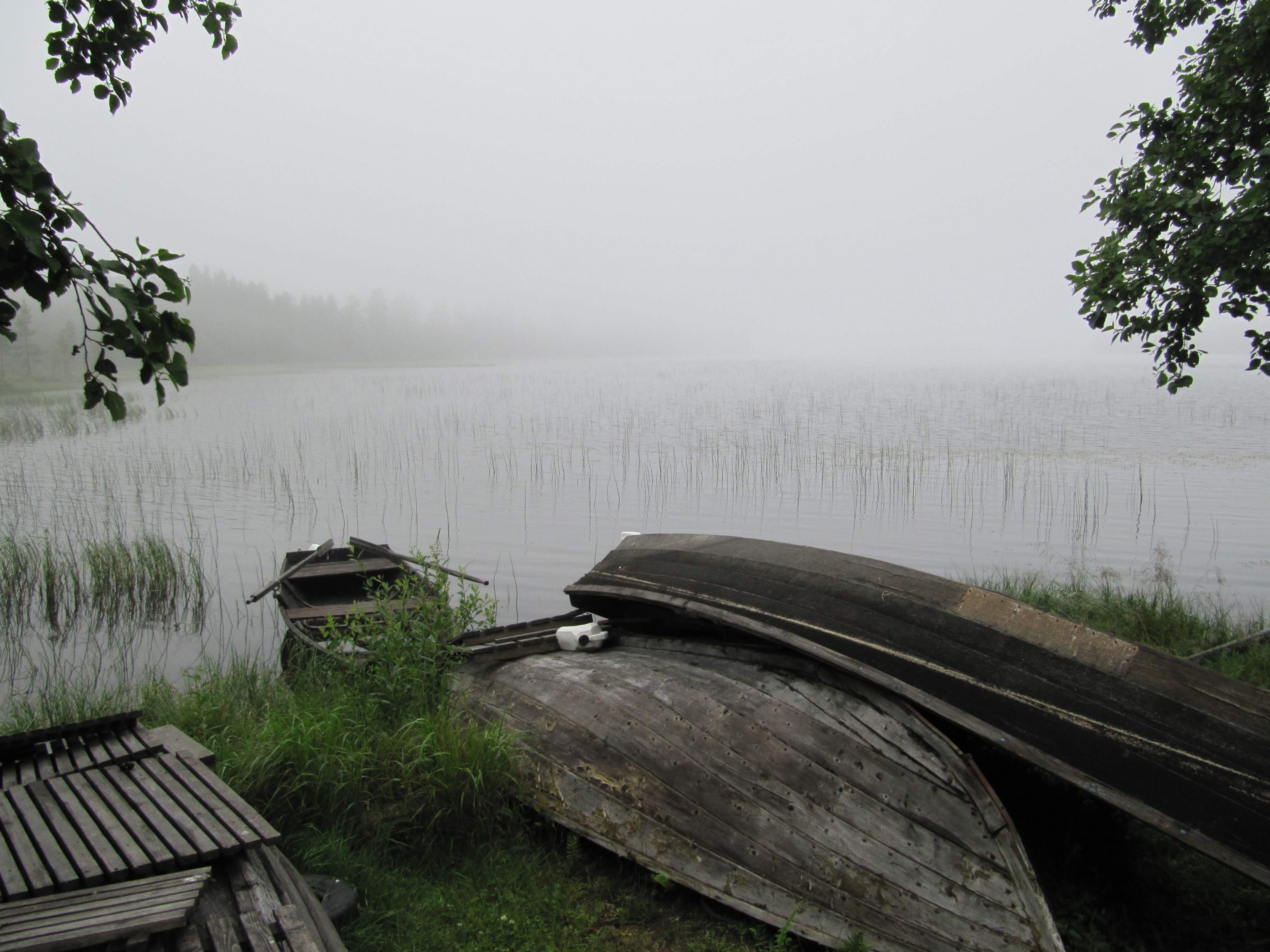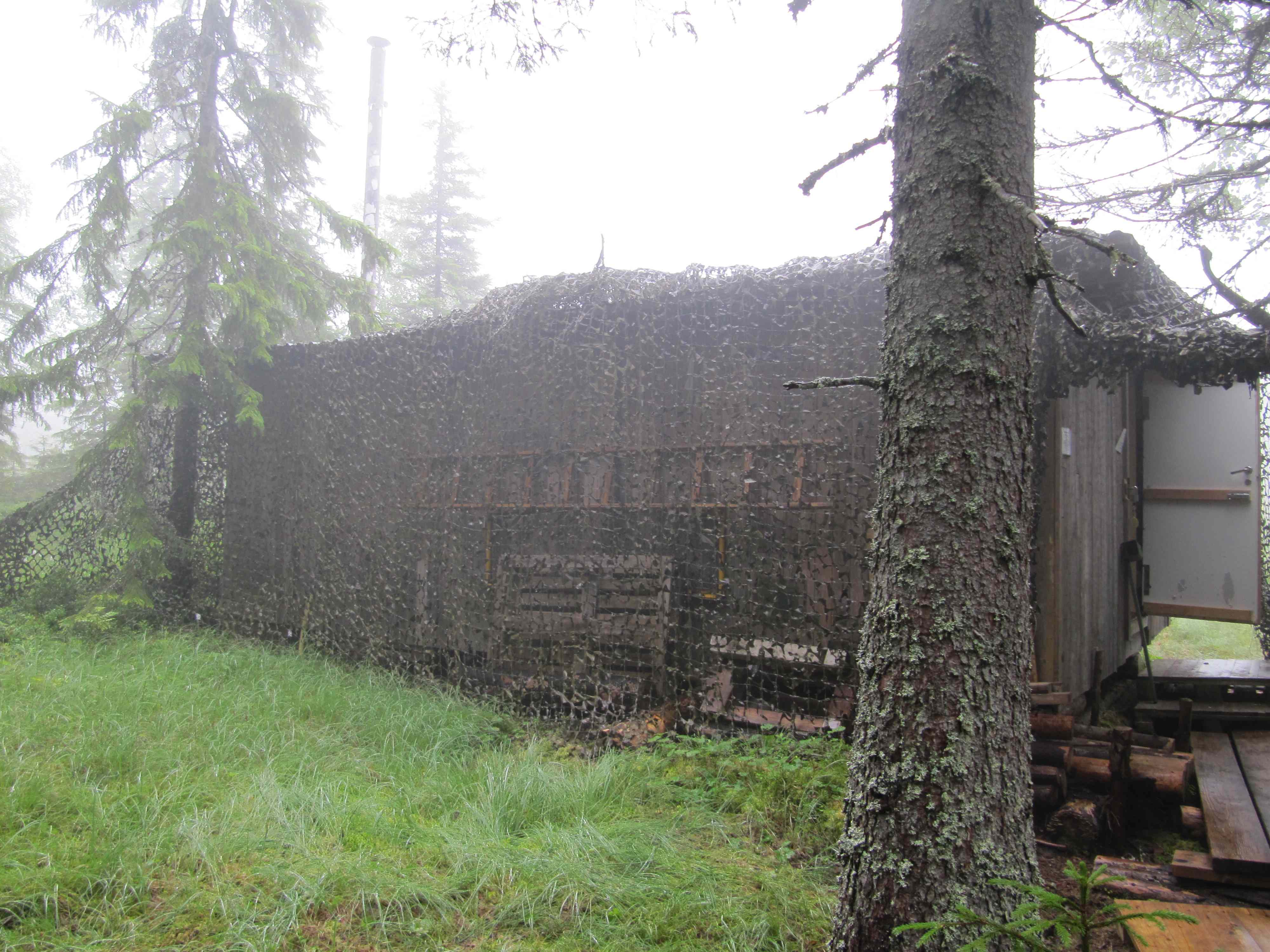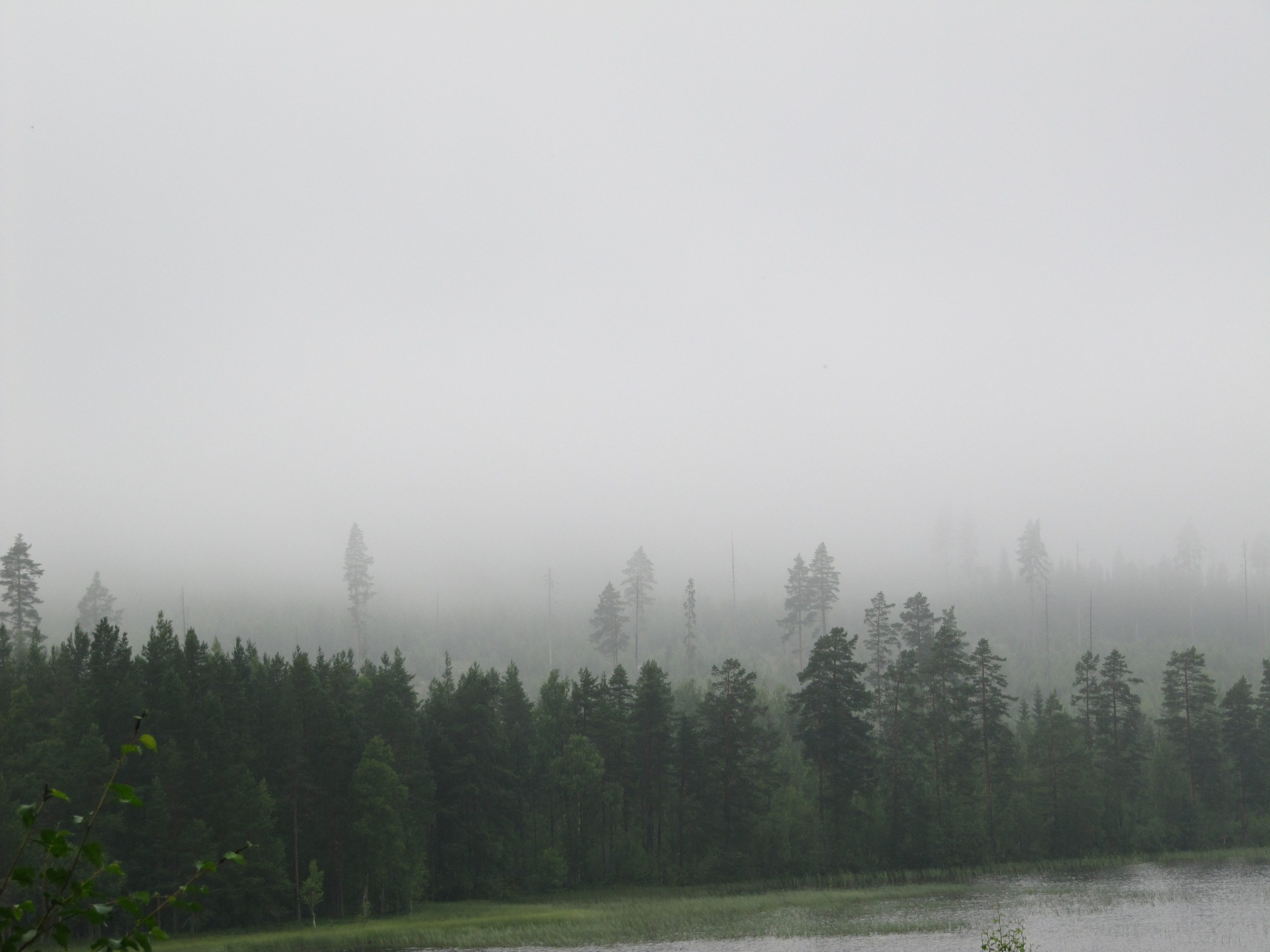 Es wird spät, die einzigen Gäste, die der stinkende Fisch anlockt, sind Eichhörnchen, große, blauschwarze Raben, und andere Waldvögel. Es beginnt zu regnen. Nebel steigt auf, der Wald ist wie verzaubert. Ein bläulicher Schimmer legt sich über alles. Ich erwarte halb, Elfen oder Trolle über die Lichtung geistern zu sehen. Inzwischen ist es zwei Uhr morgens. Ich kann die Augen nicht mehr aufhalten. Um halb sechs stehen die ersten wieder auf. Der Fisch ist noch da. Der Wald erwacht und ein schillernder Eichelhäher holt sich seinen Anteil. Gegen sieben machen wir uns auf den Rückweg durch den morgendlichen Wald. Immer noch liegt ein Zauber in der Luft, keiner sagt ein Wort. Wieder an der Lodge angekommen ziehen die letzten Nebelschwaden über den See. Wir haben keine Bären gesehen, doch niemand ist enttäuscht. Der Wald hat uns alle in seinen Bann geschlagen.